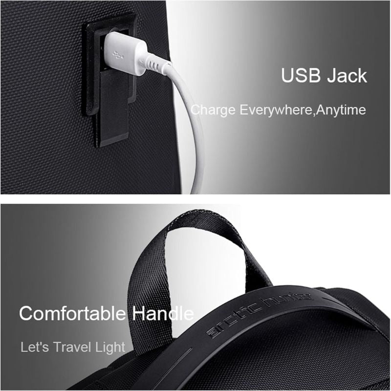 Our travel backpack is made having built in USB and Headphone port with charging cable.