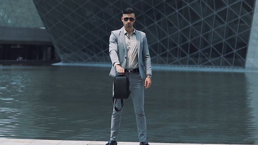 Experience maximum shoulder support with the wide, adjustable straps and buckle. The bag's three compartments include a PU-coated, invisible zippered section, a middle compartment with RFID pockets and a detachable key holder, and an extra spacious compartment with a separate iPad pouch.